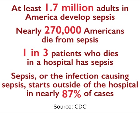 About 1.7 million U.S. adults develop sepsis each year and at least 350,000 die; nearly 87% of those patients have an infection that is not getting better, said CDC Director Mandy Cohen, MD, MPH.
