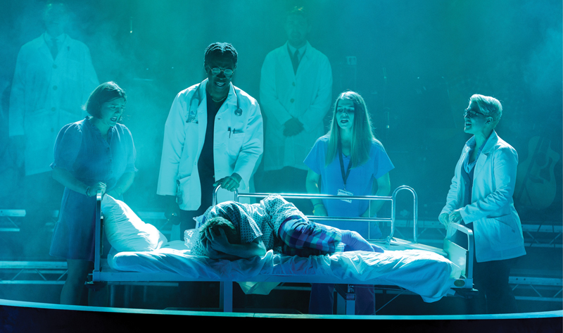 “I had looked through the play casually to get the context of the songs,” he said. “But it wasn’t until we were rehearsing. … ‘Lifeline’ is essentially two storylines. There is the historical storyline about the life of Alexander Fleming and then there’s a modern storyline. And the modern storyline is about this young doctor, and she has this lifelong friend who has colon cancer, and then had surgery to remove his colon but then developed an infection. It develops into an antibiotic-resistant infection, and ultimately he dies at the end,” Dr. Dela Cruz explained.