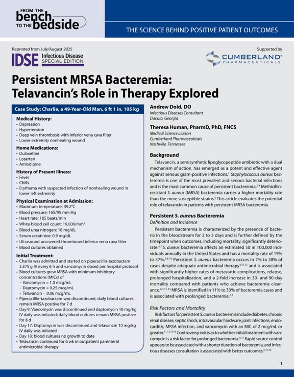 Persistent MRSA Bacteremia: Telavancin's Role in Therapy Explored
