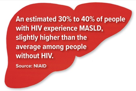 MASLD is the most common cause of chronic liver disease in the United States, and is a leading reason for liver transplantation. An estimated 30% to 40% of people with HIV experience MASLD, slightly higher than the average among people without HIV, according to the National Institute of Allergy and Infectious Diseases.